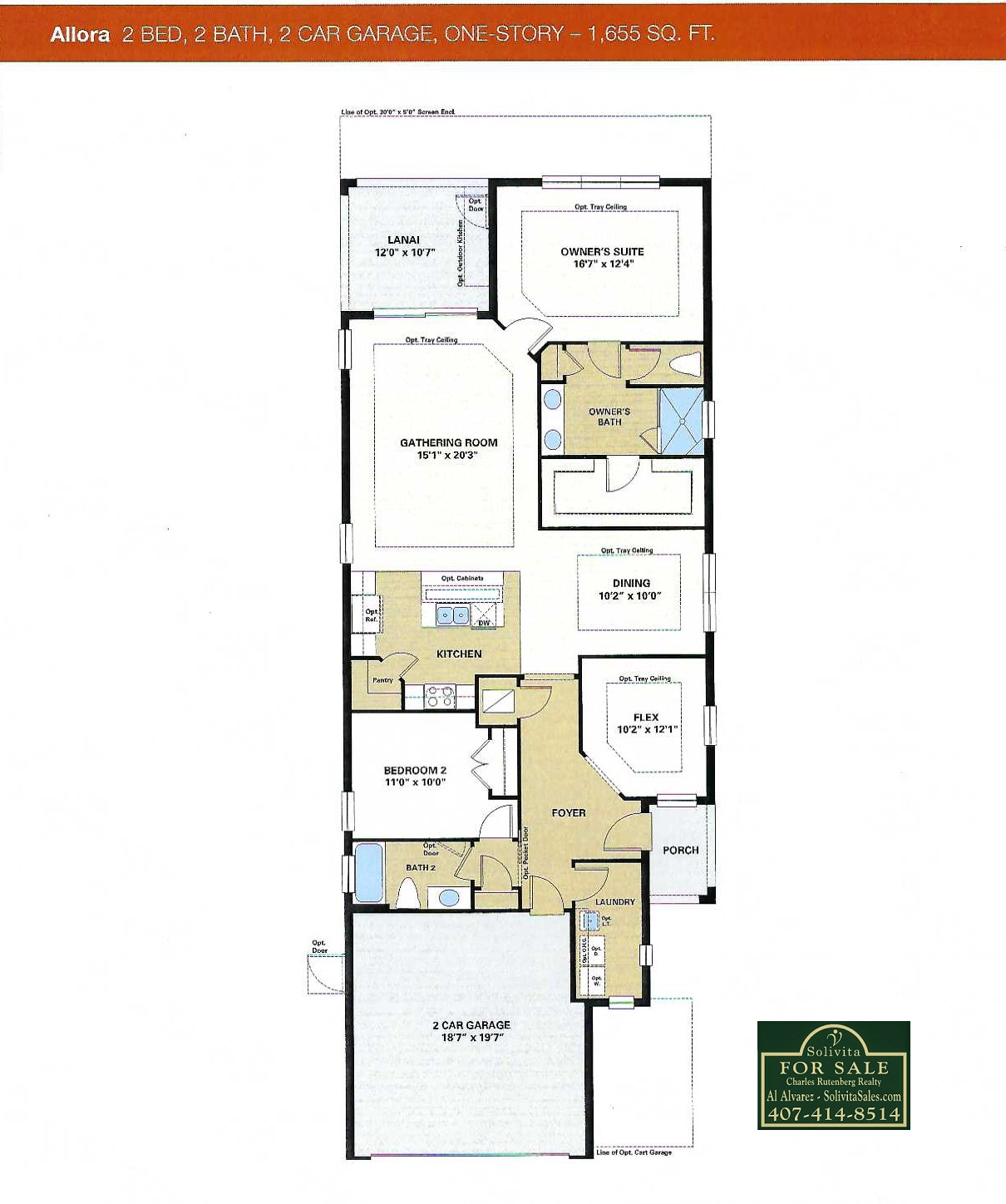 This beautiful floor plan features an open concept floor plan with 1,655 sq ft of living space. It is a 2 bedroom, 2 bathroom home with a Flex Room.