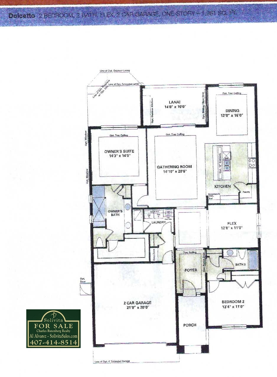 This spacious floor plan features 1,981 sq ft of living space. It has 2 bedrooms, 2 bathrooms, and a flex room.