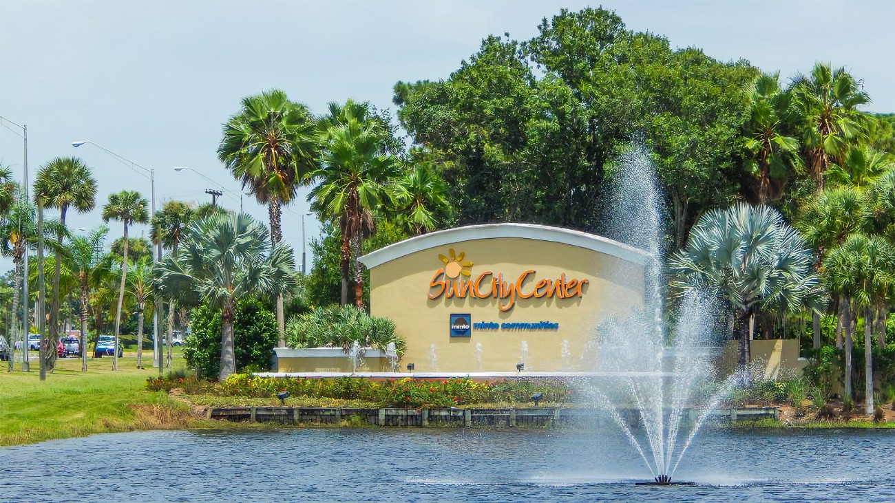 Located 25 miles south of Tampa, Florida, Sun City Center is the epitome of the tried-and-true real estate adage “location…location…location”. Sun City Center is surrounded by five popular Florida cities known for their arts, culture, restaurants, shopping, and beautiful scenery: Tampa, Sarasota, St. Pete, Clearwater, and Bradenton. Rather than a single community, Sun City Center is a city comprised of many 55+ communities, with both individual and shared amenities. In Sun City Center, Golf carts may be operated on all public streets. With multiple golf courses recreational centers, restaurants, shopping centers, movie theaters, and clubs, Sun City Center is a self-contained retirement city. Offering a low-maintenance and active lifestyle, Sun City Center is a popular choice for retirees.