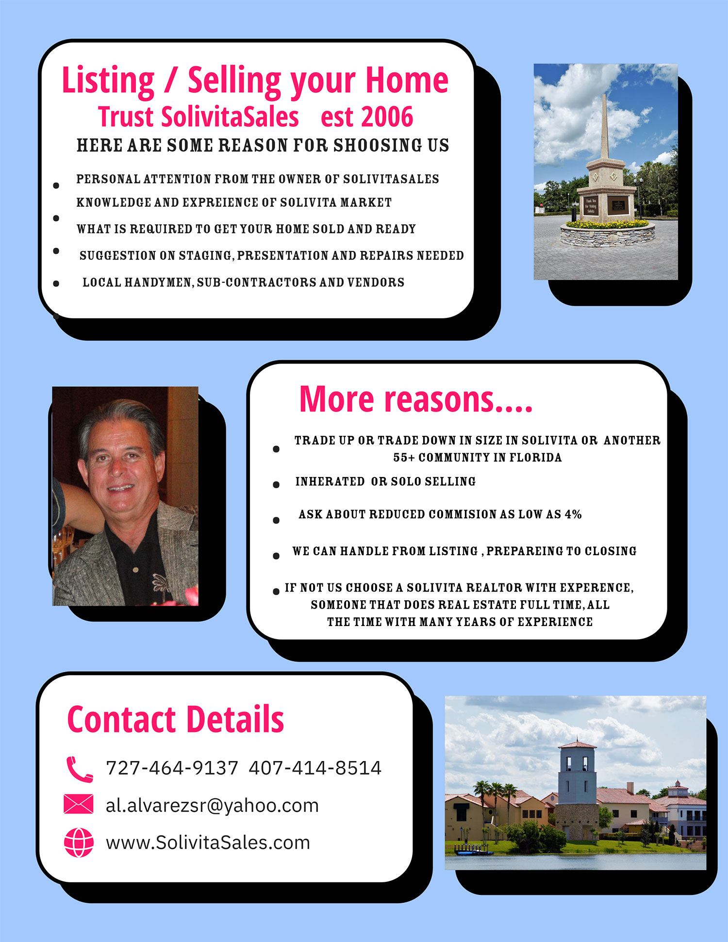 "We appreciate you contacting us about Solivita, Central Florida's Premier 55+ Community. Resort style living at it's finest. One of our colleagues will get back to you shortly."
